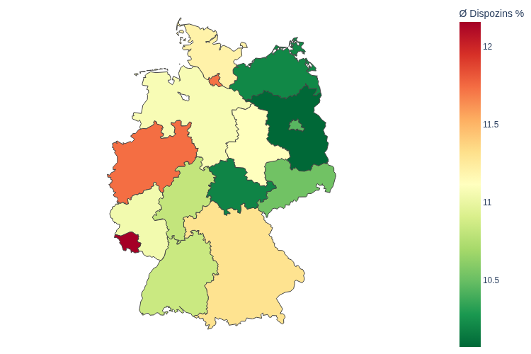 - Höchster Ø Dispozins: Saarland (12,16 %)